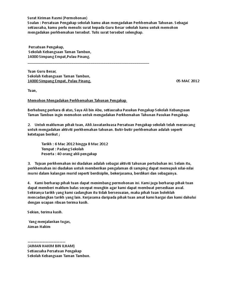 Contoh Surat Kiriman Rasmi Kepada Cikgu Spm